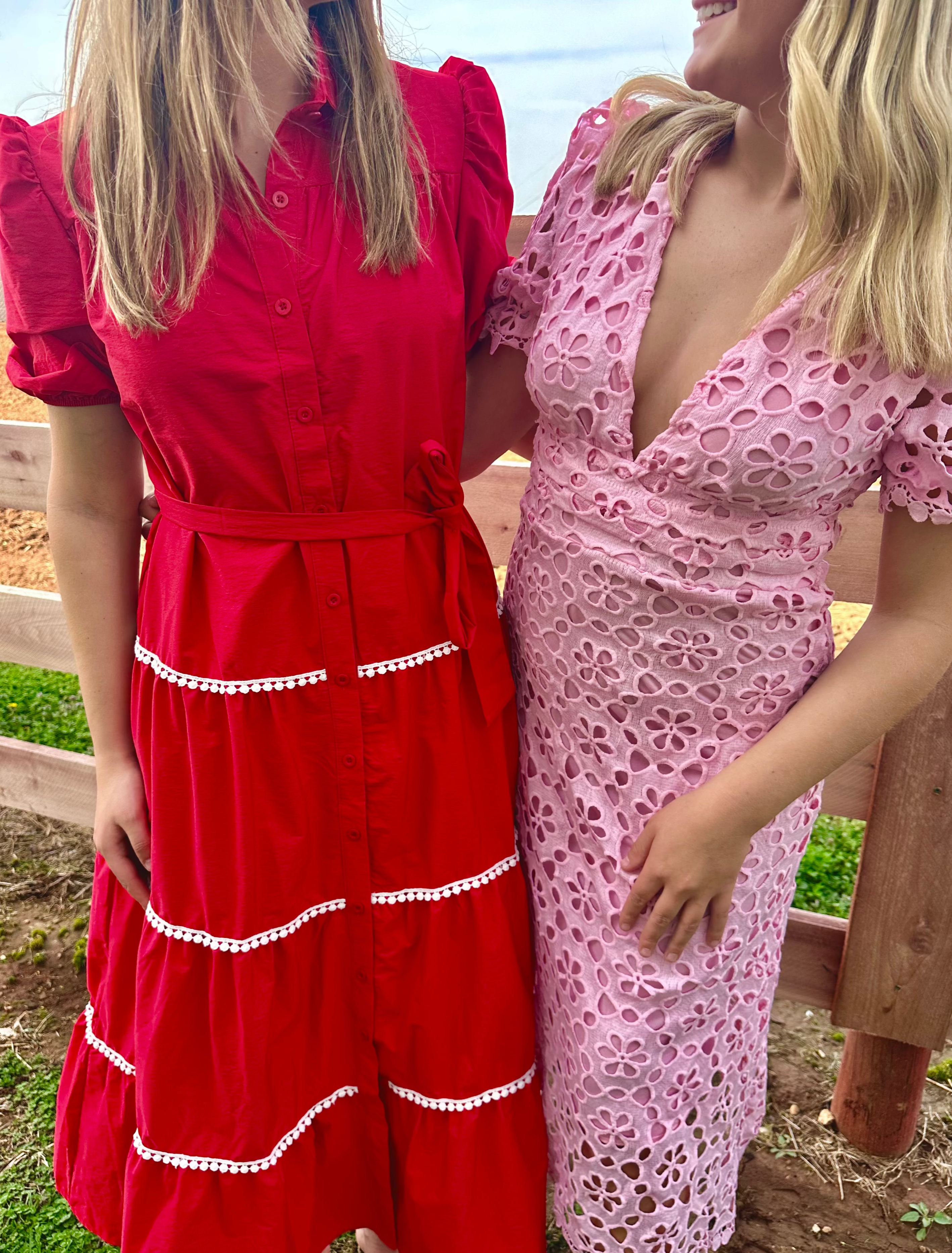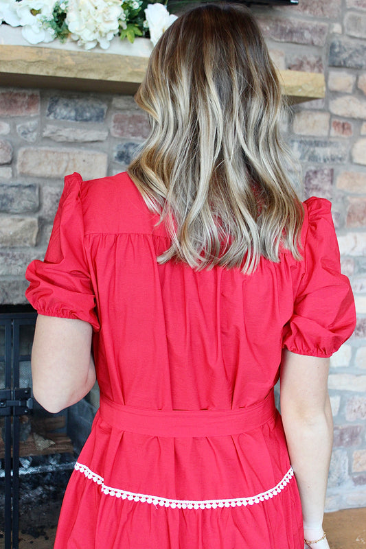 Puff Sleeve Layered Tie-Front Shirt Dress