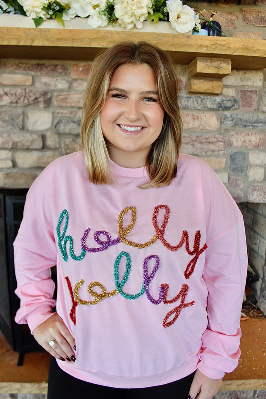 Pink Holly Jolly SequIn Top